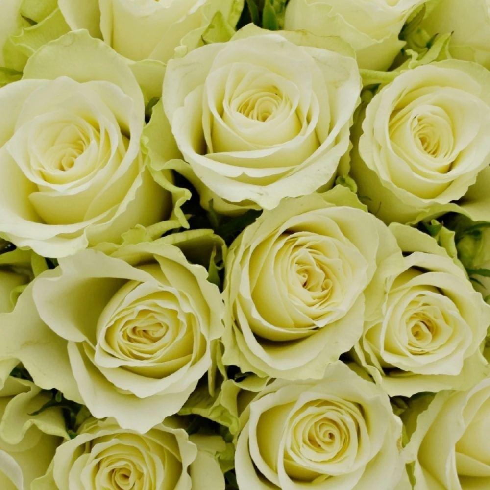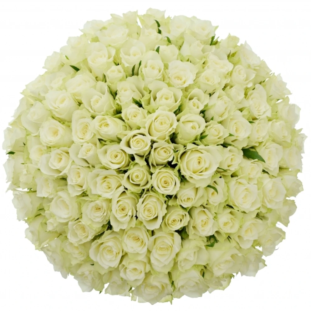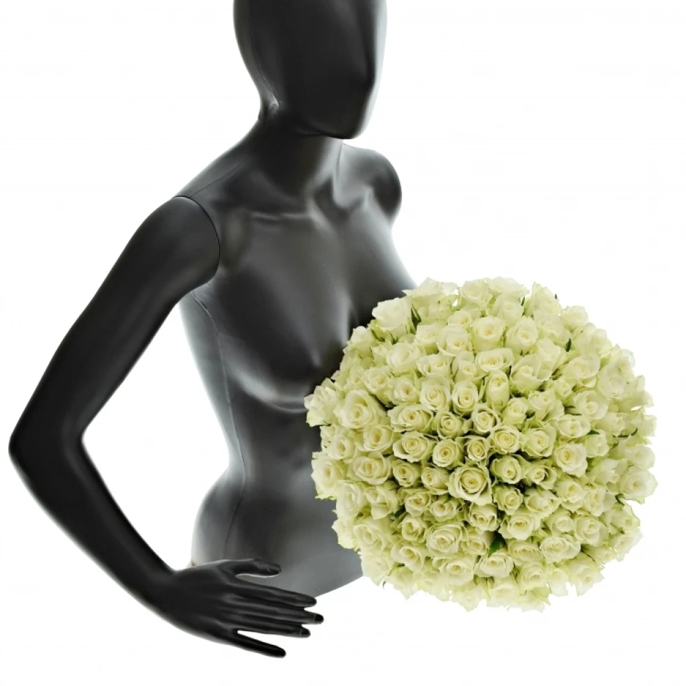 Jednodruhová kytice 100 bílých růží ATHENA 50 cm
