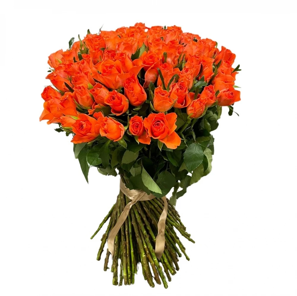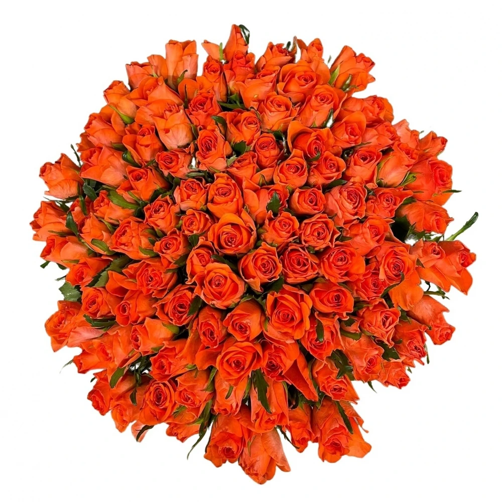 Jednodruhová kytice 100 oranžových růží COMANCHE 50 cm
