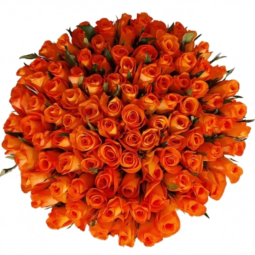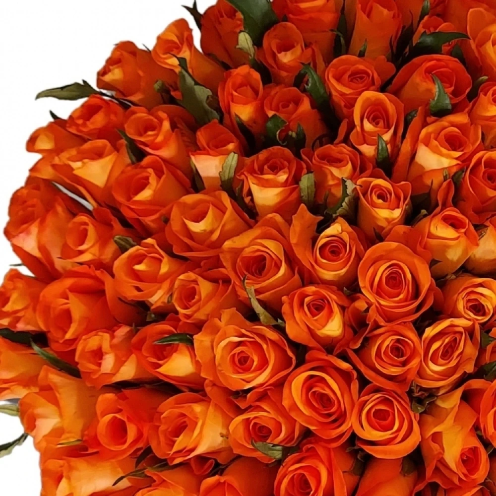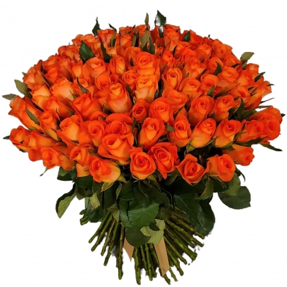 Jednodruhová kytice 100 oranžových růží TROPICAL AMAZONE 70 cm