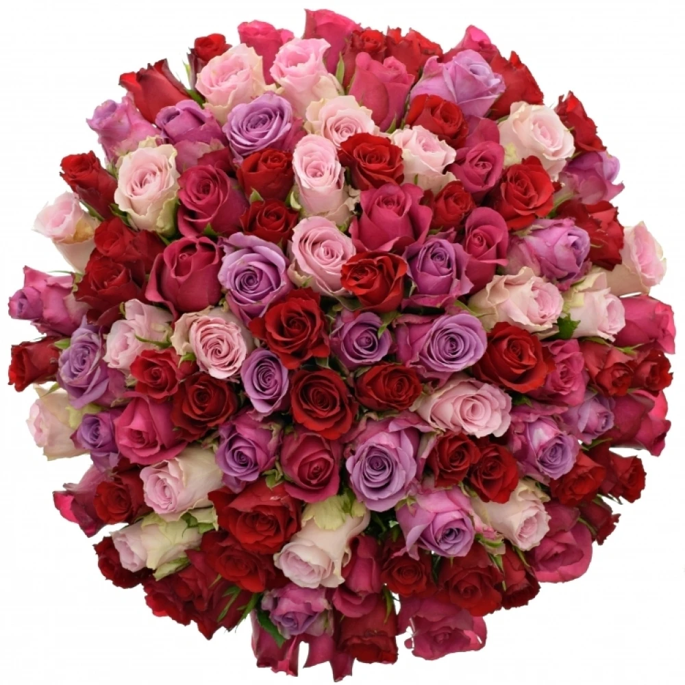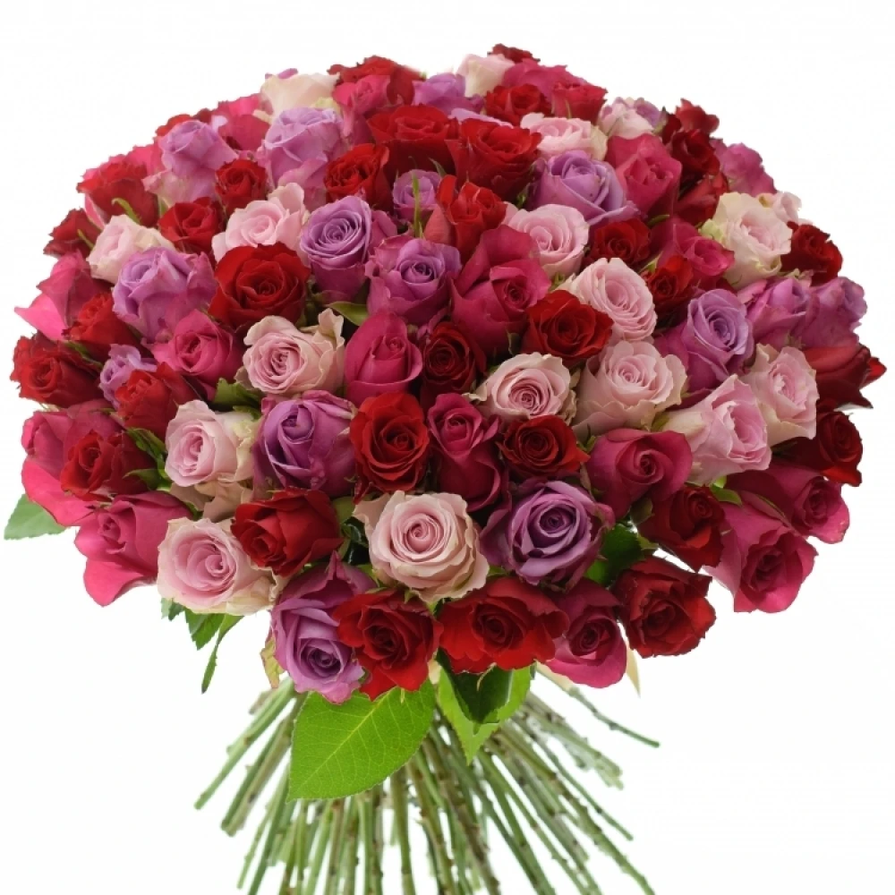 Míchaná kytice 100 vícebarevných růží ANETTE 50 cm