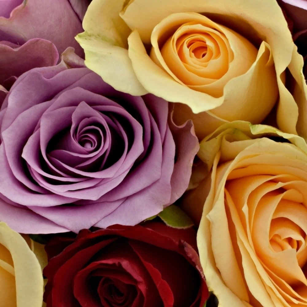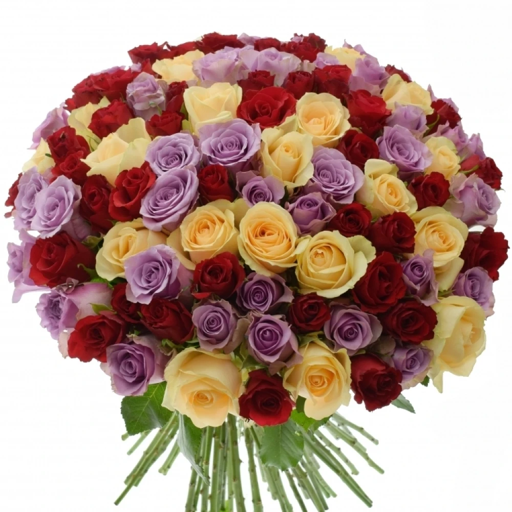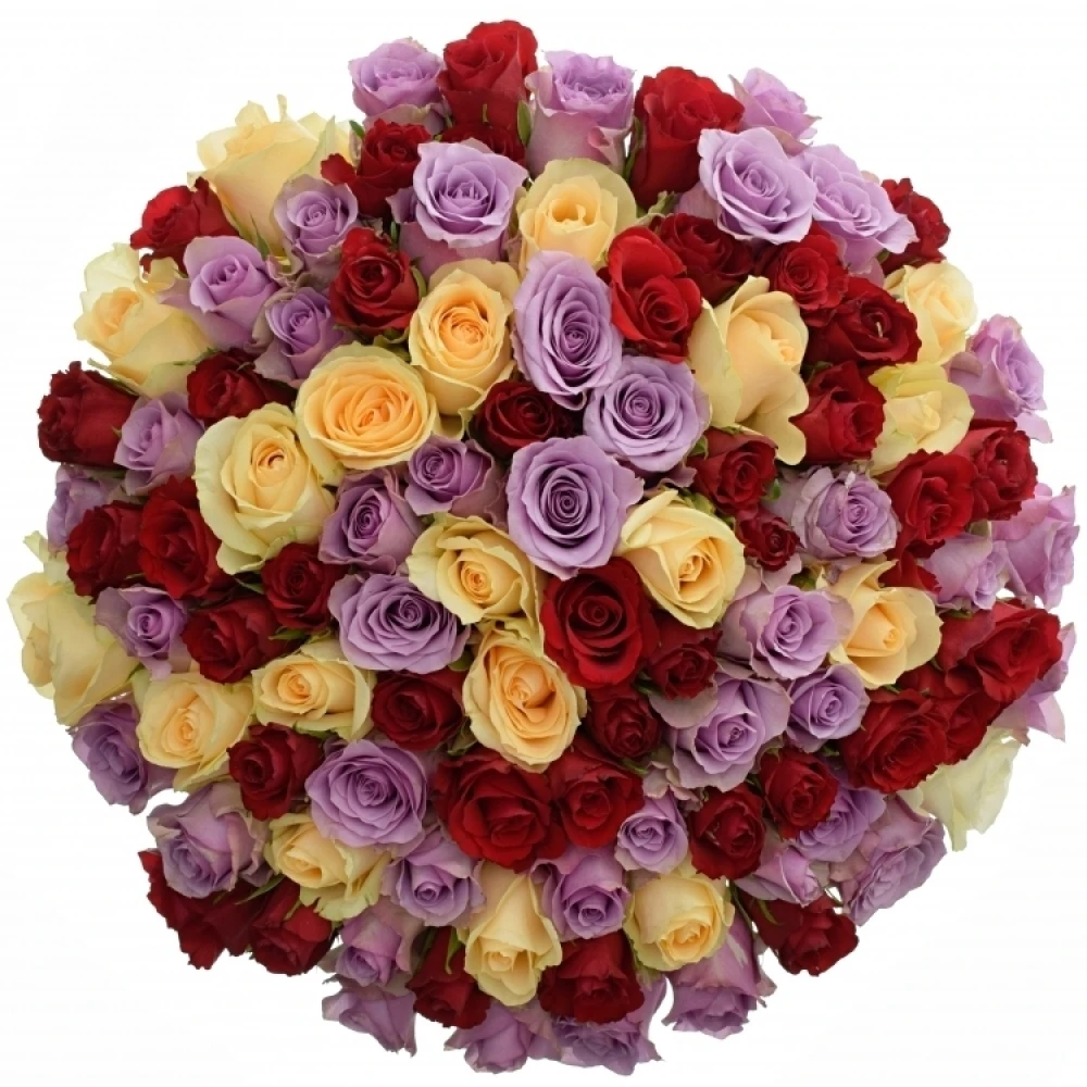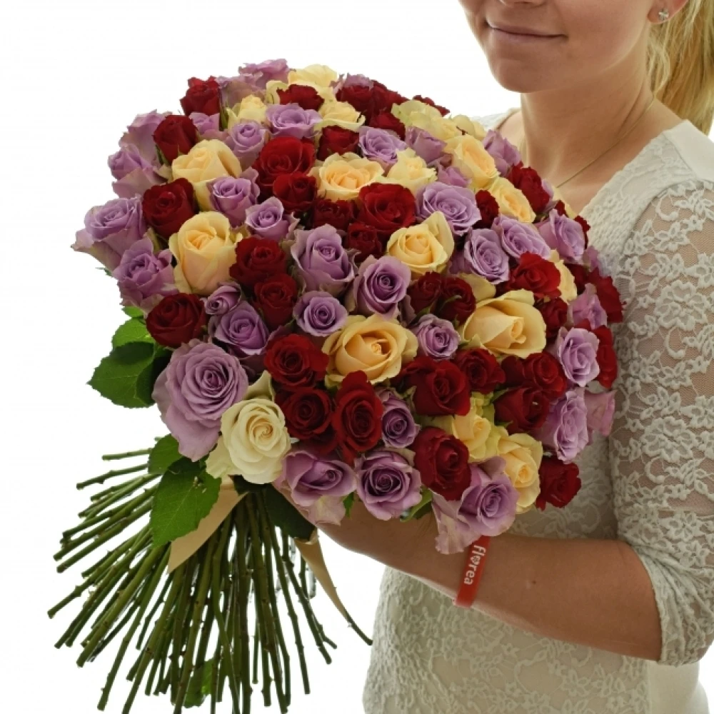 Míchaná kytice 100 vícebarevných růží DEVORAH 50 cm