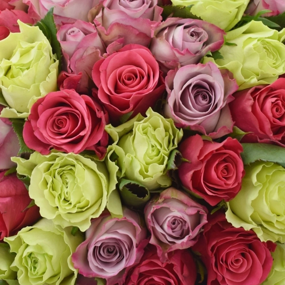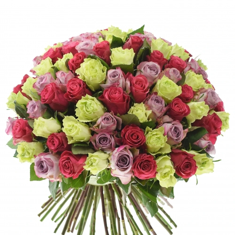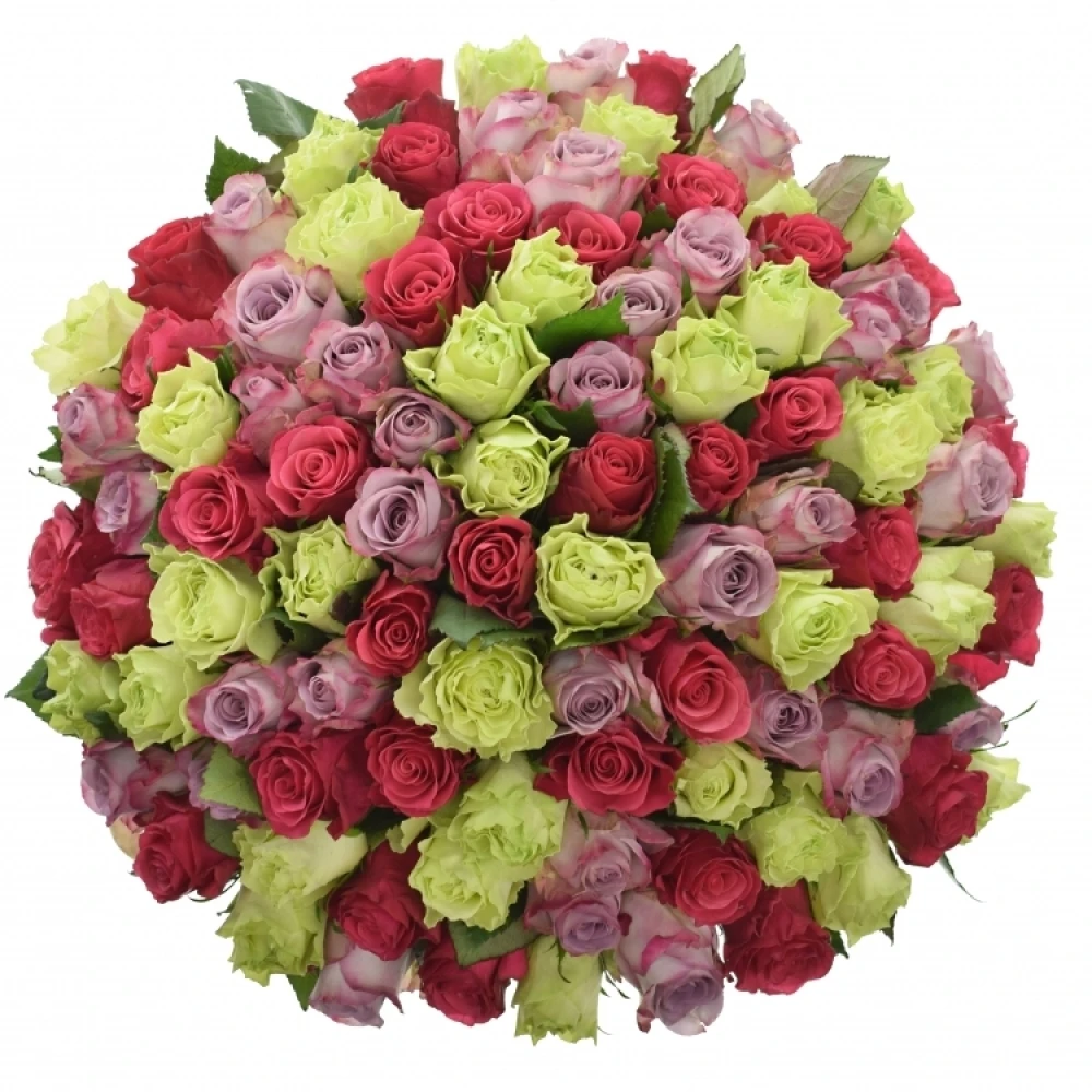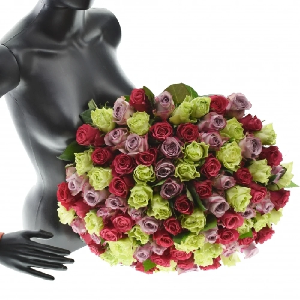 Míchaná kytice 100 vícebarevných růží FRANCESCA 60 cm