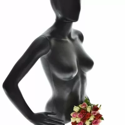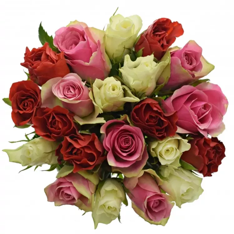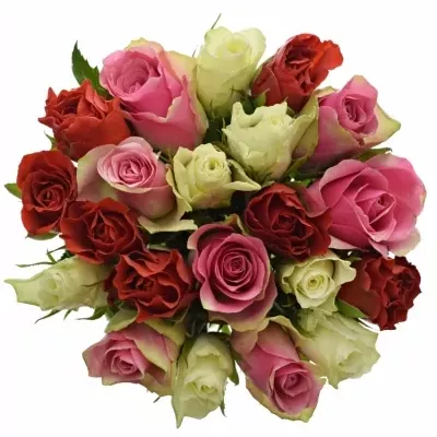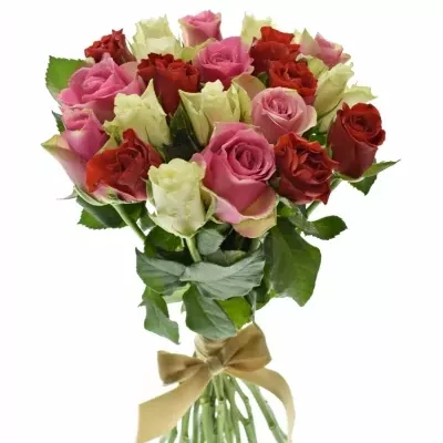 Míchaná kytice 21 vícebarevných růží MAHA 50 cm