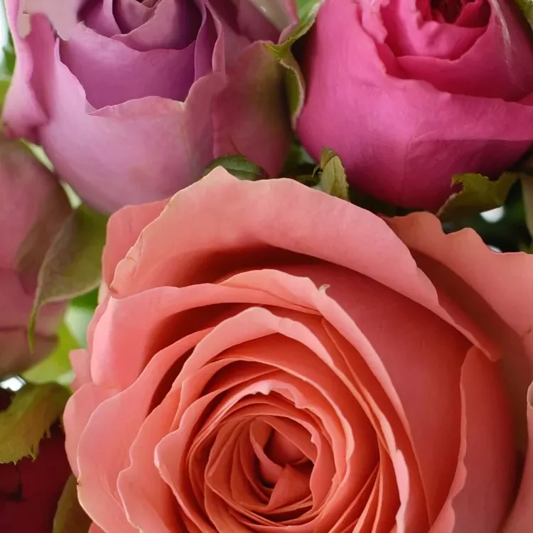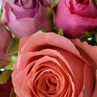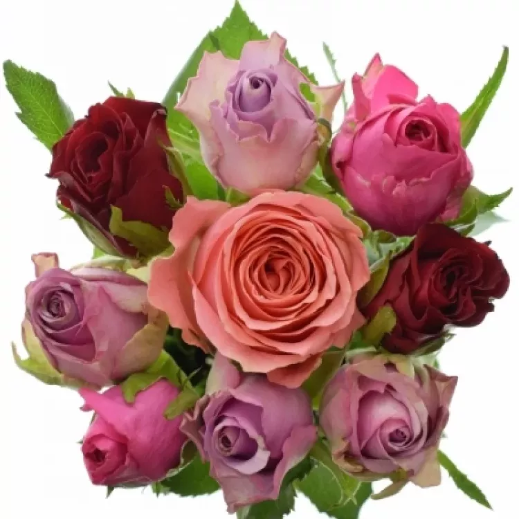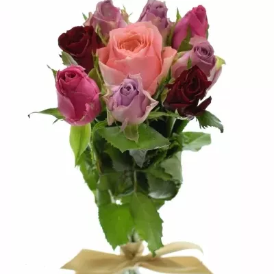 Míchaná kytice 9 vícebarevných růží ABERA 40 cm